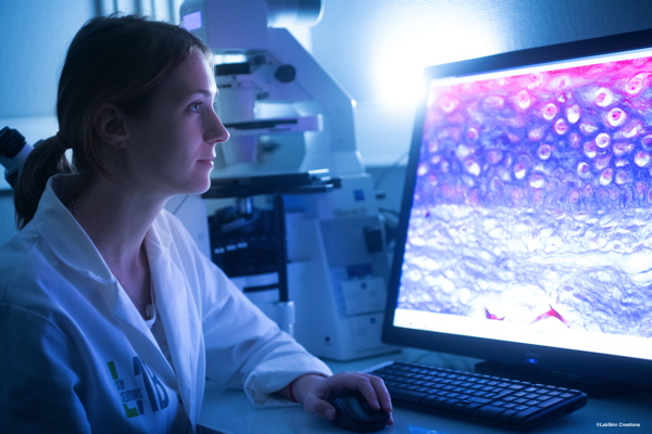 Sandrine Héraud - A dermatite atópica é uma doença inflamatória crônica, que afeta mais de um em cada dez recém-nascidos. A LabSkin Creations associou diversas estratégias para realizar esse modelo. O elemento inovador é o uso de células de pacientes que apresentam dermatite atópica, às quais associamos linfócitos. Isso faz com que seja o primeiro modelo humano in vitro de dermatite atópica com um componente imunitário. Nos pacientes com dermatite atópica, observa-se uma migração das células imunitárias em todo o tecido. O modelo da LabSkin Creations apresenta um fenótipo patológico que imita o perfil cutâneo alterado característico dessa doença, oferecendo a possibilidade de testar ingredientes e produtos acabados desenvolvidos com o objetivo de tratar a patologia.