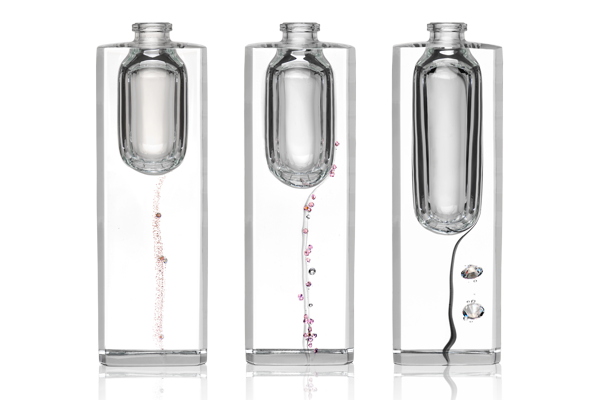 Por fim, em matéria de acabamento, apresentamos novidades no campo da decoração COLOR’In (ouro, pedra e magma, por exemplo), compatíveis com a maioria das fórmulas de perfumes, bem como tecnologias que produzem efeitos iridescentes e metalizados – segmento em que a demanda é alta. Para satisfazer a esse mercado, dispomos de um amplo leque de soluções técnicas, como holografia, laqueamento, estampagem a quente, etc. No setor de perfumes de luxo, acompanhando as mais recentes tendências, apresentamos uma coleção excepcional de vidros, como o Verre Haute Joaillerie (vidro de alta joalheria), obtido graças a uma técnica patenteada de incrustação de pedras preciosas durante o processo de conformação do vidro, e o Verre Minéral (vidro mineral), que se inspira em técnicas de fabricação do vidro de Murano a fim de produzir nuances exclusivas de cores.