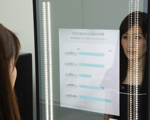 Tudo o que os clientes precisam fazer é sentar na frente do espelho. O sistema analisa o perfil de aparência do cliente graças aos sensores sem contato embutidos no espelho. O sistema detecta não apenas manchas, rugas, linhas de sorriso, poros e tom de pele, mas também pontos ocultos, invisíveis a olho nu. Em seguida, com base nos resultados do aconselhamento e análise digital, o sistema recomenda o pacote ideal para cada cliente dentre os produtos e serviços das marcas do grupo Kosé, excluindo Albion.