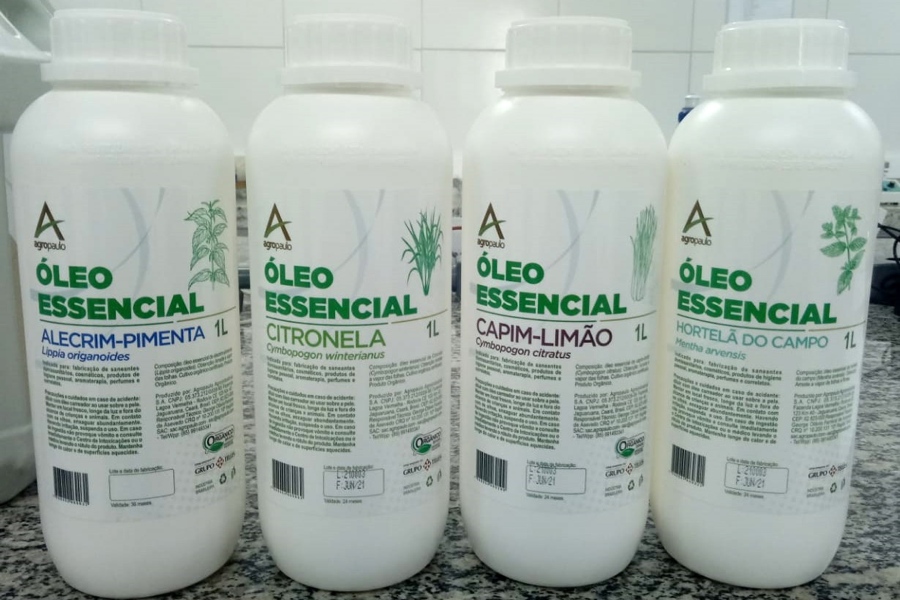 A Agropaulo também disponibiliza os óleos essenciais em embalagens de 20ml. “Desenvolvemos uma linha de produtos voltada ao consumidor final, atuando nas áreas de bem-estar e aromaterapia com a marca NatEssential, porém, direcionamos o foco para o fornecimento dos óleos às indústrias e envase de marca própria para terceiros”, explica Telles Neto.