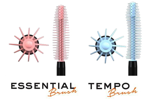 – A escova Essential, com amplos reservatórios que absorvem o produto em um piscar de olhos, confere ainda mais volume aos cílios. A rigidez da ponta possibilita o acesso aos cantos dos olhos, dando mais realce aos cílios.