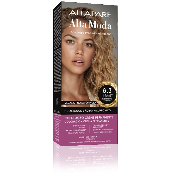 Enxergando a exigência do público em consumir produtos que ofereçam boa performance e tratamento ao mesmo tempo, a Alta Moda, marca do grupo italiano Alfaparf Milano, reestruturou a fórmula de sua linha de colorações permanentes, além de lançar duas novas nuances de loiros (loiro dourado claro, de numeração 8.3, e loiro dourado claríssimo, 9.3) e transformar a identidade visual da embalagem, trazendo um toque mais moderno.