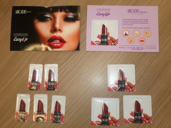 O Easylip é a nova tecnologia da Arcade para amostragem de batons. É baseado sobre uma patente brasileira comprada pela Arcade.