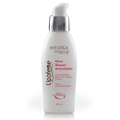 O Lipofeme Nano Shower da Extratos da Terra é “um anticelulítico de profunda permeação na pele e ação prolongada e programada, agindo até 8 horas após aplicação”. De acordo com a empresa catarinense, o que garante tamanha eficiência é o uso da nanotecnologia. O produto conta com uma combinação de ativos nanoencapsulados, tecnologia que usa nanopartículas com diâmetro médio de 250 nanômetros, ou seja, uma tecnologia que permite a permeação nas camadas mais profundas da pele.