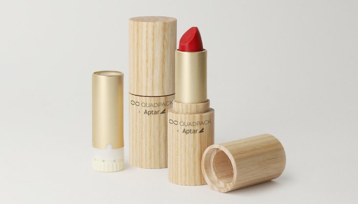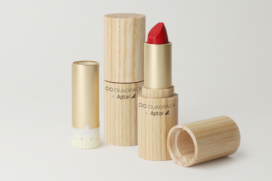Empresa sediada em Barcelona e especializada na confecção de embalagens para o setor de beleza, a Quadpack mobilizou sua expertise no desenvolvimento de elementos de madeira, aliando-se à Aptar, especialista da fabricação de mecanismos para batons. Juntas, as duas companhias desenvolveram um batom recarregável com o intuito de dar um passo a mais rumo à sustentabilidade dos produtos de maquiagem, mas sem renunciar ao alto nível de sensorialidade do produto.