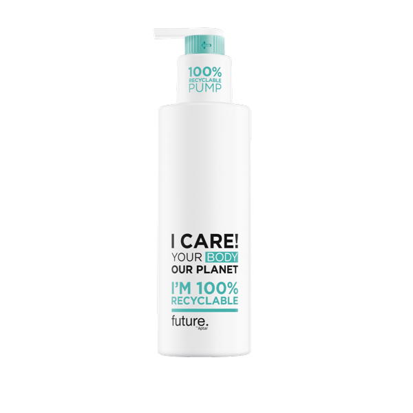 A bomba Future, por sua vez, é inteiramente fabricada em polietileno (PE), um dos materiais plásticos mais usados e mais reciclados no mundo. Quando integrada a um frasco produzido com o mesmo material, a bomba Future garante a reciclagem integral da embalagem; com um frasco em PP ou PET, ela facilita a coleta seletiva do produto. A bomba Future também está disponível em resina pós-consumo (PCR) obtida por meio da tecnologia Advanced recycling, que a Aptar já vem utilizando em parceria com a REN. Esse processo permite obter o mesmo nível de qualidade proporcionado pela resina convencional.