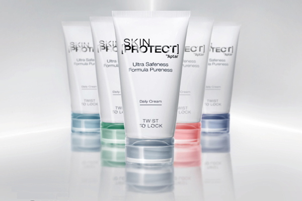Resultado de quatro anos de desenvolvimento, o Skin Protect funciona sem retorno de ar no tubo, graças a um pistão que fecha hermeticamente o orifício assim que a distribuição da fórmula é interrompida. "Esta tecnologia patenteada garante um fechamento completamente selado bem como um controle fácil do fluxo do creme. O tubo Airless é equipado com a tecnologia Tip Seal, que evita qualquer entupimento do produto no orifício de distribuição. O capô é ventilado em três pontos e evita o confinamento do ar e, portanto, a umidade na superfície do produto", explica a Aptar.