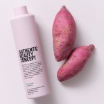 O novo shampoo Cool Glow Cleanser foi desenvolvido com uma composição exclusiva e um dos ingredientes é o extrato de batata-doce roxa, rico em antocianinas - um poderoso antioxidante vegetal que reduz inflamações e indicador de pH. De acordo com a marca, a novidade vem para evitar que tons quentes apareçam nos cabelos claros.