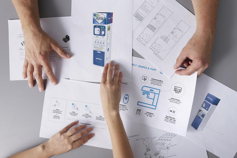 O teste é fruto de uma colaboração entre os departamentos de Embalagens e P&D da Beiersdorf, cujas equipes trabalharam por cerca de seis meses para solucionar questões de segurança, microbiologia e ergonomia de uso, de forma que as estações pudessem ser disponibilizadas nas lojas.