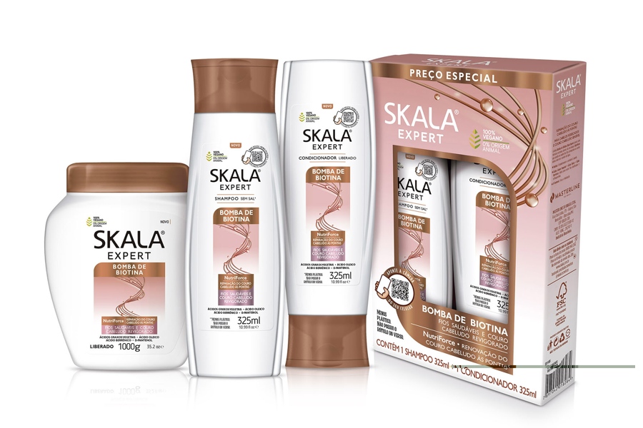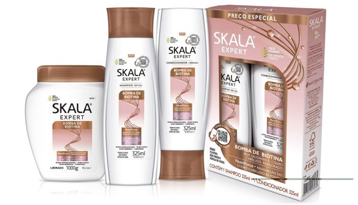 Umas dessas marcas é a Skala Cosméticos, que lançou no último semestre desse ano a linha Bomba de Biotina. “Com a pandemia de Covid-19 muitas pessoas sofreram com queda de cabelo. Um dos ativos indicados para esta condição é a biotina e acreditamos que o seu sucesso recente se deva a essa situação”, afirma a diretora de marketing Bruna Veneziano.