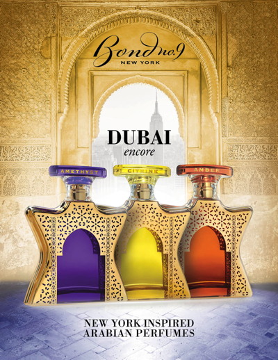 “É esse futurismo exagerado do reino, como a miragem do deserto, onde O Oriente encontra o Ocidente, que capturamos os três perfumes originais Dubai Emerald (Dubai Esmeralda), Dubai Ruby (Dubai Rubi) e Dubai Indigo (Dubai Índigo), lançados em 2015. As edições Encore (Bis) deste ano, que marcam o início de uma coleção completa, compartilham a mesma estética que quebra o molde e que está redefinindo a perfumaria impetuosa e exótica e a impelindo para o Século XXI,” diz a empresa.