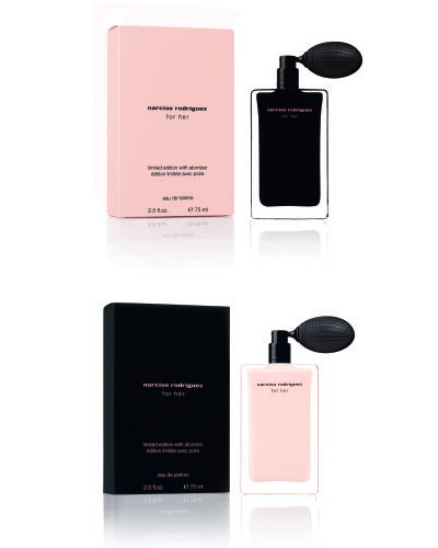 Narciso Rodriguez escolheu, para caracterizar essa edição, o borrifador em forma de pera criado pela Aptar Beauty + Home, que valoriza o gesto de se perfumar e proporciona uma nova experiência de beleza. O objetivo da marca era oferecer um borrifador que se adaptasse naturalmente às formas clássicas e exclusivas do frasco do "For Her" e, ao mesmo tempo, fosse perfeitamente estanque e confiável.