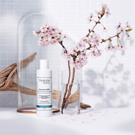 Um ingrediente fundamental no xampu purificador de Christophe Robin é o extrato de casca de jujuba. Obtido da casca da planta jujuba, o Ziziphus Joazeiro, na Américas do Sul, o extrato é uma alternativa de origem 100% natural ao piritiona de zinco, um produto químico usado em tratamentos comuns da caspa. Para reforçar a ação do extrato de casca da jujuba, o xampu de Christophe Robin inclui extratos da flor de cerejeira, especialmente conhecidos por seus benefícios hidratantes e suavizadores.