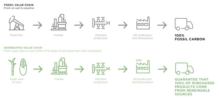 Desenvolvidos para fórmulas naturais com alto índice de carbono renovável (RCI), os produtos Vita permitem otimizar o teor de carbono sustentável no processo de fabricação de bens de consumo como detergentes, shampoos e gel de banho, bem como de tintas, lubrificantes industriais e produtos usados na agricultura.