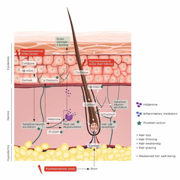 Segundo a empresa, ao diminuir o estresse dos fios e do couro cabeludo, o novo extrato neutraliza com eficácia a desaceleração do crescimento dos folículos pilosos causada pelo estresse, contribuindo para prevenir a queda dos cabelos e protegendo sua estrutura. Além disso, o extrato proporciona maior bem-estar ao couro cabeludo, aumentando a liberação de oxitocina, possante neurotransmissor com marcada ação de inibição do estresse. Os efeitos positivos do princípio ativo foram comprovados por testes clínicos.
