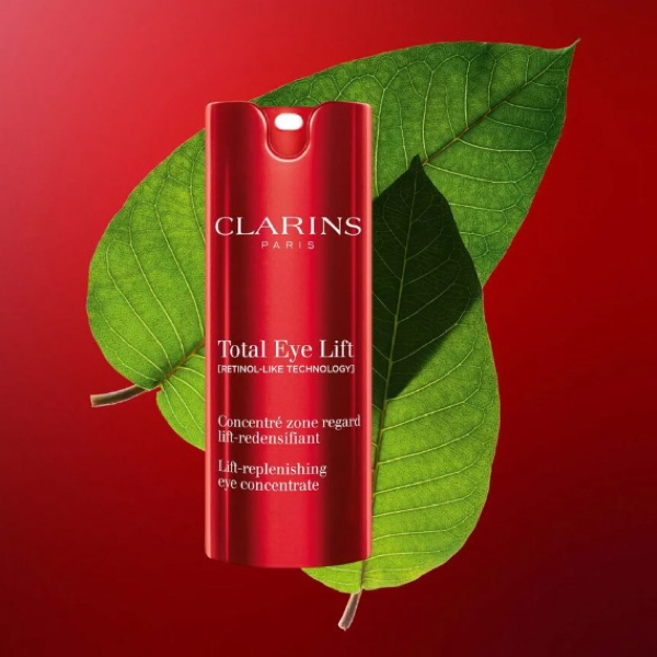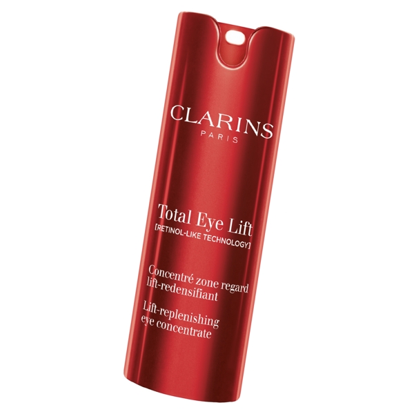 O Total Eye Lift é oferecido no formato de 15 ml e fornece uma dose precisa de 150 µl, perfeitamente adaptada ao contorno dos olhos. A tampa metálica vermelha adiciona um toque de elegância sofisticada. Ela foi desenvolvida sob medida para a Clarins, garantindo assim um uso exclusivo e um visual distinto.