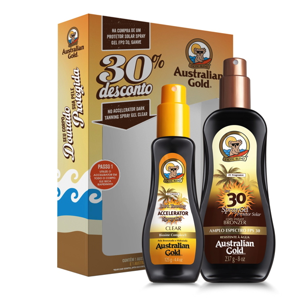 Os artigos da Australian Gold, que seguirão à risca a formulação aprovada pela matriz norte-americana, terão redução de preços no país, o que favorecerá seu potencial competitivo no mercado. Para a temporada de verão 2018, os best-sellers Protetor Solar FPS 30 (237 ml) e Accelerator Clear (125 ml), que já são produzidos localmente, serão vendidos juntos em um pack promocional com 30% de desconto (R$ 85,90), de acordo com a marca.