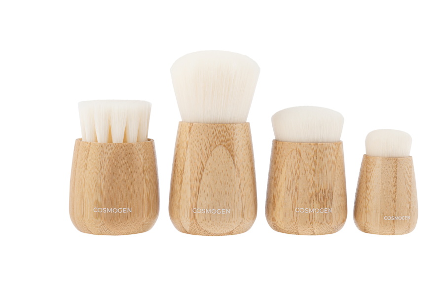 Também para aprimorar a experiência de aplicação de cosméticos sólidos, a Cosmogen lançou uma linha de pequenos pincéis com cabo largo. Esses novos pincéis kabuki tornam a aplicação de cosméticos sólidos mais simples, mais higiênica e mais sensorial. Basta umedecer as cerdas, esfregá-las no produto e em seguida aplicar.