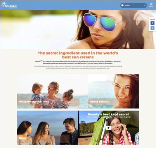 O site também é fundamental na divulgação e no apoio à campanha Solaveil Physical Shield que foi criada especialmente para conscientizar os consumidores sobre a importância da Proteção UV. Pesquisas comprovam que os cuidados com o sol e os riscos de câncer de pele estão sendo esquecidos e não estão recebendo a devida importância entre os mais jovens, apesar de todos os alertas sobre as mudanças climáticas e seus efeitos. Concebido para proporcionar uma experiência perfeita em múltiplas plataformas, o novo site está disponível em cinco idiomas, além de trazer informações e notícias atualizadas sobre prevenção, tecnologia e novidades no mercado de produtos para protetores solares e produtos de beleza.