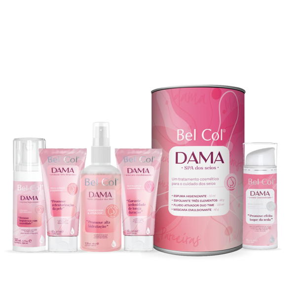 Os seios são o foco da linha DAMA, lançada pela Bel Col. Com seis produtos, que vão da higienização à firmeza e rejuvenescimento da pele, ela foi pensada como um spa para a região. “Os seios são o símbolo da plenitude feminina e nada melhor do que cosméticos para elevar a autoestima, segurança e confiança da mulher”, afirma orientadora técnica Nancy Viveiros.