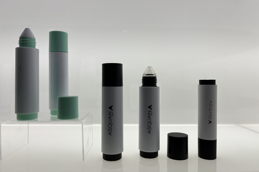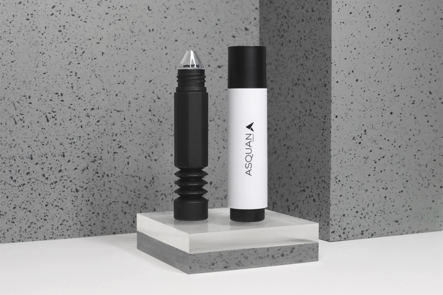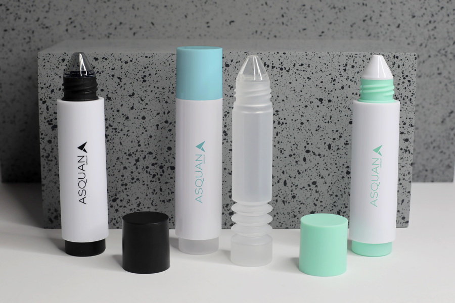 A Asquan apresentou o Essential Push Button Tottle, dispositivo recarregável com capacidade de 30 ml, equipado com uma "mola" integrada que é responsável por liberar o produto quando o usuário aperta a extremidade da frasnaga (ou tottle). O orifício do bico está disponível em dois tamanhos (1,2 mm e 2 mm), o que torna o sistema compatível com uma grande variedade de fórmulas de diferentes viscosidades. A unidade de refil frasnaga + bico pode ser encaixada e retirada do estojo externo com gestos simples e intuitivos.