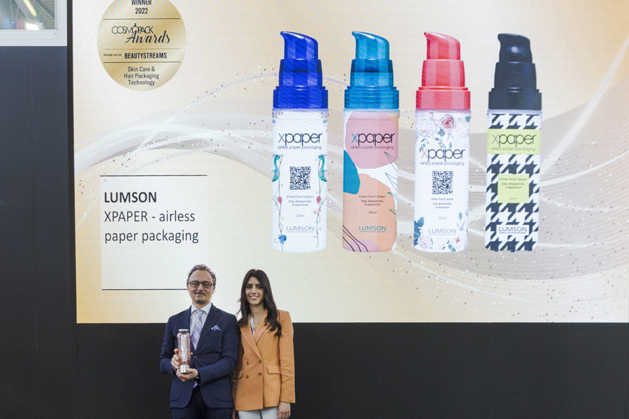 Premiado em 2021 pela Associação Italiana de Design (ADI, Associazione per il Designo Industriale), o dispensador airless de papelão desenvolvido pela Lumson oferece uma alternativa mais leve e mais ecológica que os sistemas que utilizam plásticos, vidro ou alumínio.