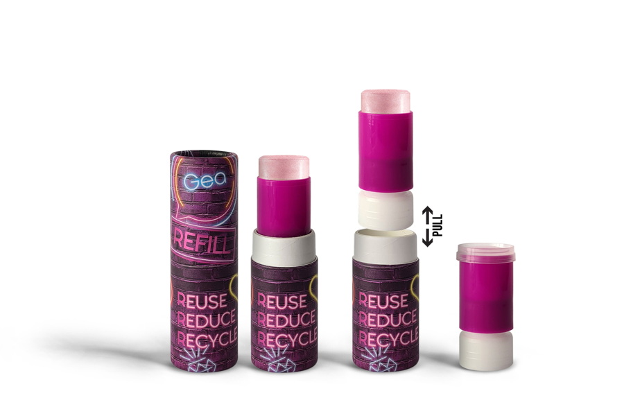 A coleção ecológica de embalagens recarregáveis da empresa italiana ganhou dois novos artigos: Lipstick GEA REFILL e Sticks GEA REFILL, que apresentam uma base em papelão/papel, um mecanismo interno de plástico, um anel também de plástico (fácil de retirar e trocar) e uma tampa de papelão/papel. Ao todo, a redução de materiais plásticos é de 75%.