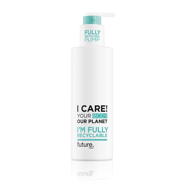 No campo do plástico, a Aptar Beauty + Home apresentou duas soluções interessantes: o Pure, solução em que tanto a bisnaga como a tampa são em polipropileno (PP), formando um conjunto inteiramente reciclável; e o Future, primeira bomba monomaterial em polietileno (PE) especialmente destinada ao mercado de cuidados pessoais, lançada pela empresa em maio deste ano.