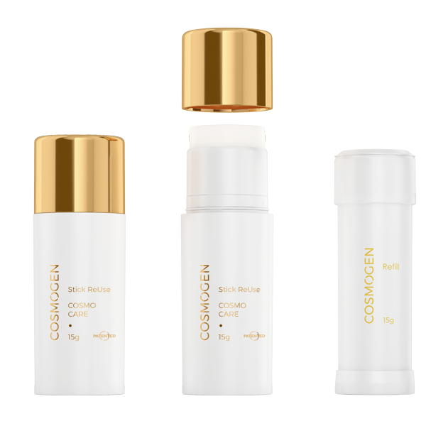 Com inovações que abrangem bisnagas, frascos airless e bastões para fórmulas sólidas, a Cosmogen explorou todas as possibilidades de uso e aplicação em sistemas recarregáveis, apresentando a linha ReUse e seus diversos aplicadores independentes.