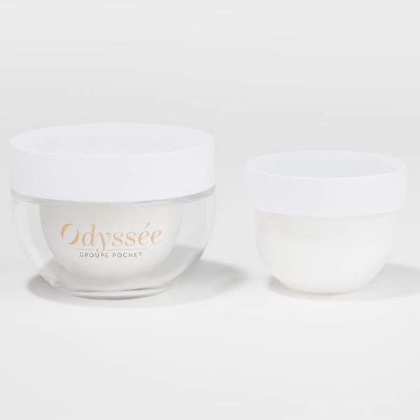 O mesmo tipo de estratégia foi adotado pelo Grupo Pochet, que defende "um tipo diferente de luxo". A empresa apresentou o pote Odyssée, solução 2 em 1 que reúne estojo e refil fabricado em vidro mais leve. O receptáculo de refil tem sua própria tampa de plástico reciclado, de forma que o consumidor possa transportá-lo para onde quiser.