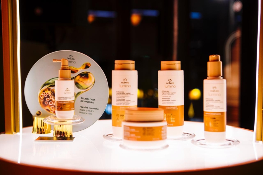 A Natura já incorporou esse benefício em sua recém-lançada linha Lumina Antissinais Regenerador Capilar, que além de tratar os sinais de envelhecimento dos fios, devolvendo densidade e vitalidade, conta com a tecnologia exclusiva Pró-Melanina, que protege e estimula a produção natural da melanina no bulbo capilar, ajudando a manter a cor original dos fios por mais tempo e reverter os primeiros fios brancos.