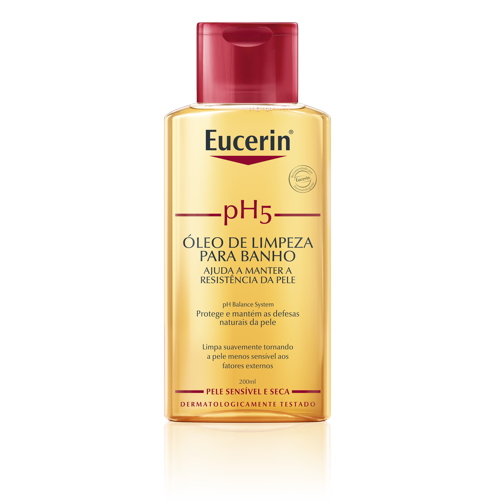 Ao ser usado, o Eucerin pH5 Óleo de Limpeza para Banho forma uma espuma suave, cremosa e perfumada. O produto oferece praticidade no uso, limpeza corporal suave durante o banho (não é recomendado o uso no rosto), proteção contra o ressecamento e reforço da barreira cutânea.