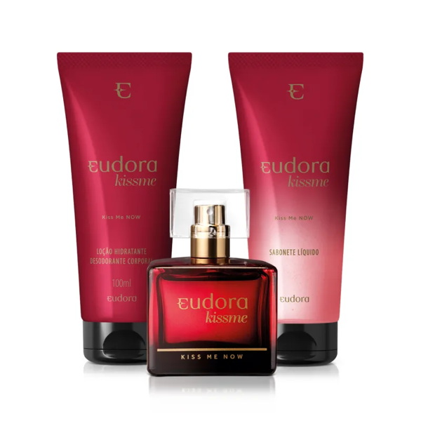 A fragrância floriental gourmand Eudora Kiss Me Now (de R$ 79,90 por R$ 69,90), foi inspirada pela atmosfera vibrante, apaixonante e sedutora da cor vermelha. A novidade passa a integrar a linha Kiss Me, que aposta em fragrâncias inspiradas nas cores vibrantes dos batons Eudora, e já conta com as fragrâncias Rosa Marcante, Cabernet, Nude Caramelo, Nude Autoral e Roxo Impulso. A Deo Colônia Eudora Kiss Me Now chega acompanhada da Loção Hidratante Corporal 100 ml e do Sabonete Líquido Corporal 100ml. O kit completo com os lançamentos, Kiss Me Now Deo Colônia + Loção + Sabonete chega ao mercado com valor promocional, de R$ 129,88 por R$ R$ 89,90.