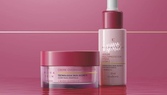 A marca do Grupo Boticário apresentou duas novidades para alinha de cuidados faciais Niina Skin, fruto da parceria de cocriação com a influenciadora digital Niina Secrets, iniciada em 2020. A marca amplia seu portfólio de skincare e aposta em mais dois itens de tratamento para a linha: um sérum com proteção solar e um peeling noturno.