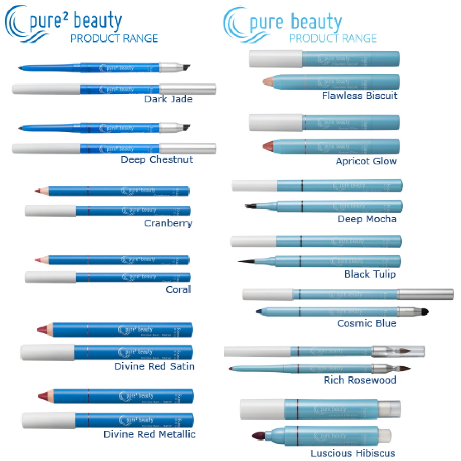As coleções Pure e Pure2 Beauty são compostas por 12 lápis cosméticos de cores diferentes, destinados à maquiagem dos olhos e dos lábios. Os pigmentos usados são ricos e oferecem alto desempenho.