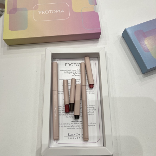 Durante o salão Cosmopack 2023, a Faber-Castell Cosmetics apresentou também uma nova linha de lápis cosméticos de madeira que oferecem alto desempenho, destinados a delinear olhos, lábios e sobrancelhas.