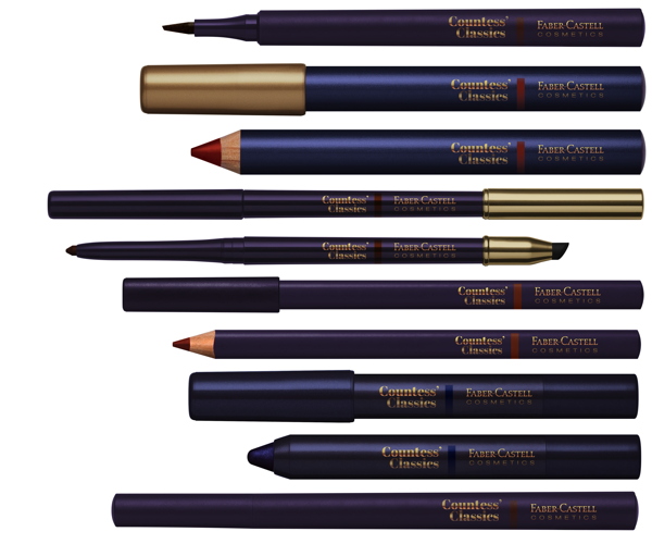 Para comemorar seus 40 anos, a Faber-Castell Cosmetics apresentou, por ocasião do salão MakeUp in Paris, realizado nos dias 21 e 22 de junho, o estojo Countess’ Classics, que traz cinco lápis (um batom, um lip liner, uma sombra cremosa, um delineador e um lápis de sobrancelha) selecionados pela própria condessa. A empresa também aproveitou sua participação no salão para dar destaque às suas mais recentes soluções market-ready: delineadores khol de longa duração, pigmentos metálicos que revelam um brilho surpreendente no momento da aplicação, além de tonalidades de aspecto mate e aveludado, que hidratam os lábios para proporcionar mais conforto.