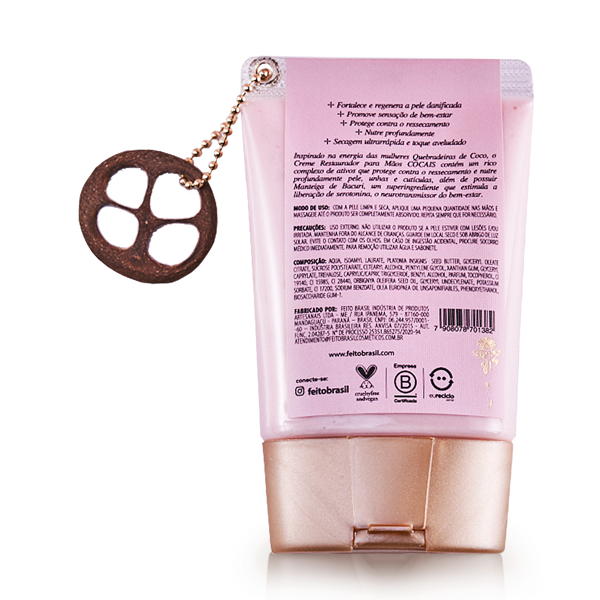 Inspirado na Mata dos Cocais e nas fortes mulheres quebradeiras de coco [1], a Feito Brasil lançou mais um produto da linha Cocais. Desta vez, o destaque é o creme de mãos, que traz a força e poder de regeneração para a pele. Com 99,7% dos ingredientes de origem natural, o creme restaurador para mãos Cocais é recomendado para todos os tipos de peles, principalmente as ressecadas.