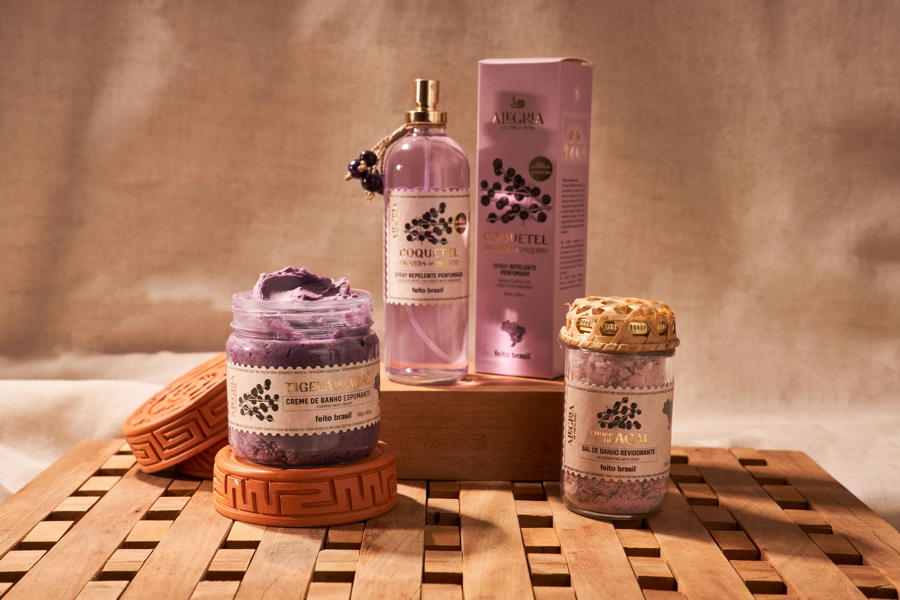 – Tigela de Açaí, Creme de Banho Espumante, Coquetel “Endoida Mosquito", Spray Repelente Perfumado, Chopp de Açaí, Sal de Banho Revigorante