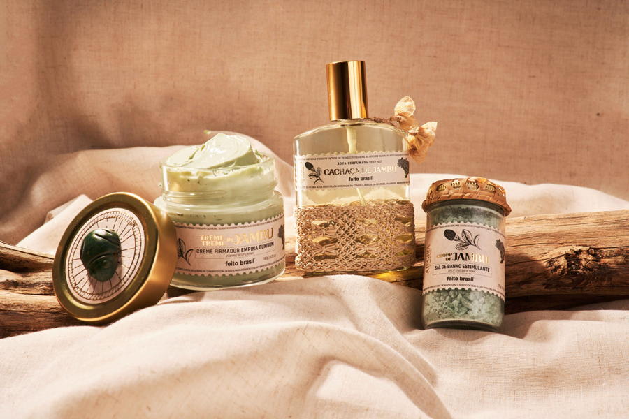 – Treme-Treme de Jambu, Creme Firmador Empina Bumbum; Cachaça de Jambu, Água perfumada, Chopp de Jambu, Sal de Banho Estimulante