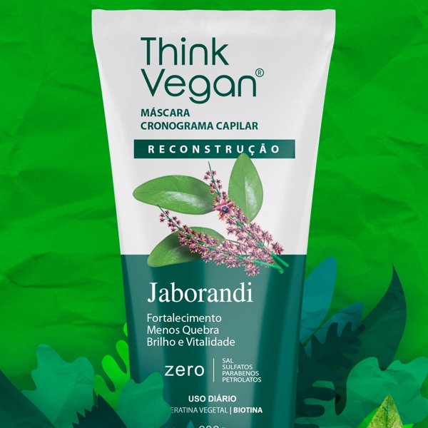 Para alinhar com a proposta da marca, que é levar para o mercado produtos de cuidados capilares produzidos com mais ativos vegetais, sem aditivos químicos nocivos à saúde humana e ao meio ambiente, a Think Vegan escolheu embalagens com resina plástica biodegradável, produzidas com matérias-primas naturais, que aceleram a sua decomposição.