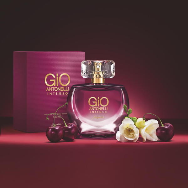 Para a perfumista, Carmita Magalhães da casa de fragrâncias Lolita Cherry, Gio Antonelli Intenso é “uma fragrância intensa e elegante, que traduz a versão sensual e empoderada da atriz e de todas as outras mulheres. Esta criação contrasta a opulência e potência da cereja negra no top com a feminilidade das pétalas de jasmim no coração. Para finalizar, as madeiras sofisticadas e os musks alegres intensificam a duração da fragrância na pele, que vai te lembrar de ser empoderada e sensual todos os dias, assim como a Gio nos inspira.”