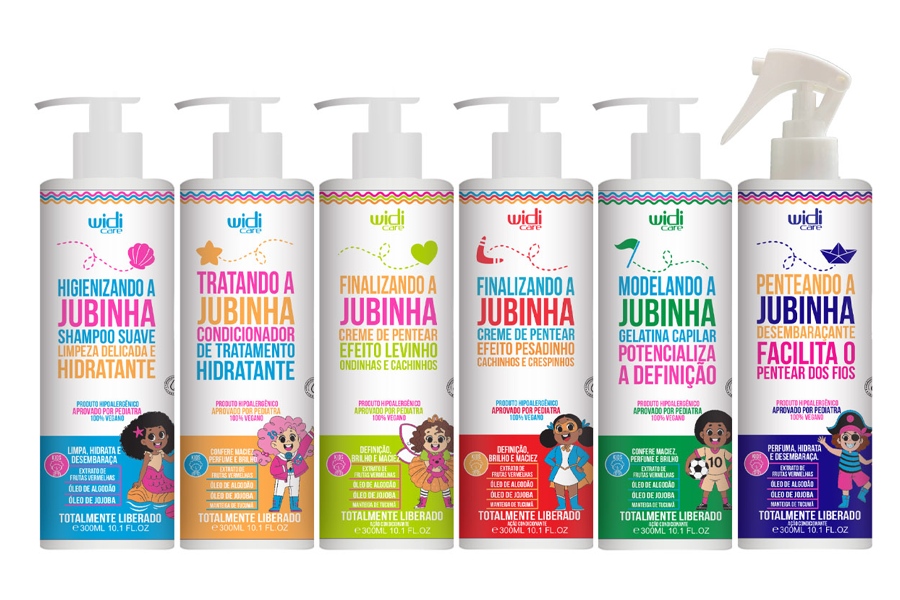 História parecida vem da Widi Care, que lançou no final de 2023 a linha Jubinha, sua primeira para o público infantil. Com xampu, condicionador, cremes de pentear, gelatina para definição e desembaraçante, é uma extensão de Juba, um dos carros-chefes da marca carioca.