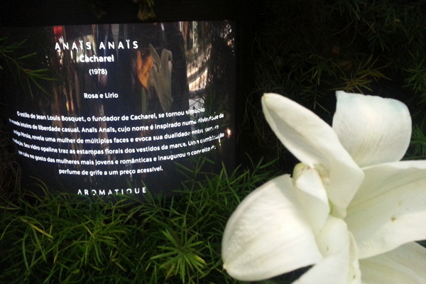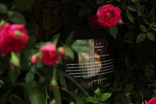 Renata Ashcar, especialista em perfumes foi a responsável pelo processo de reconhecimento e seleção dos perfumes da exposição. “Foi um grande desafio escolher perfumes que tocassem realmente pessoas em todas as idades, e muitas lembranças estão representadas aqui, no jardim Aromatique.”