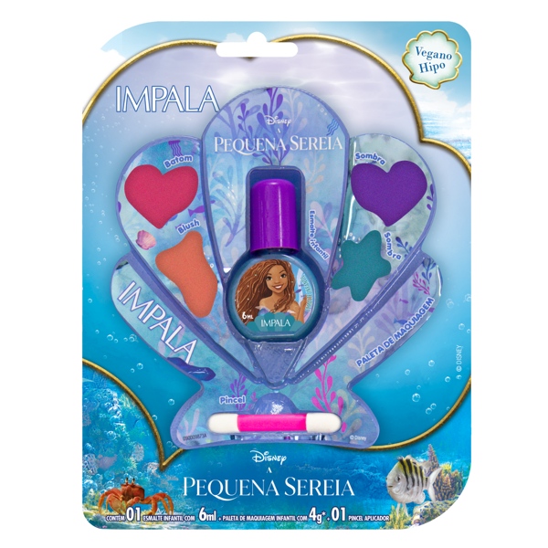 Inspirada em um dos maiores sucessos infantis, a Impala lança, em parceria com a Disney, a coleção “Pequena Sereia”, famosa personagem que acaba de ganhar vida em um live-action em exibição nos cinemas. Para levar até às crianças este universo mágico da princesa dos mares, a marca desenvolveu quatro cores de esmaltes cintilantes com iridescência e duas com glitters e muito brilho. Já a paleta de maquiagem contém blush, batom e duas sombras com cores que representam o filme e sua exuberante fotografia.