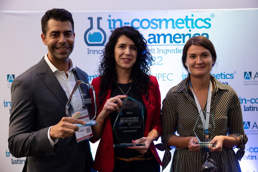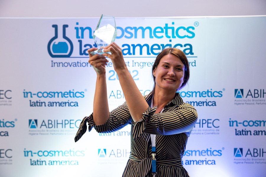 Dos 35 ingredientes inscritos, os escolhidos foram: Elaya Renova The hair tensegrist, da Vytrus biotech, que conquistou o ouro e teve o prêmio entregue pela atriz e empresária da área de cosméticos, Cristiana Oliveira; Lactive, da Bict Biotechnology Innovation, levou a prata e Myramage essence, desenvolvido pela empresa Rahn, teve colocação na categoria bronze.