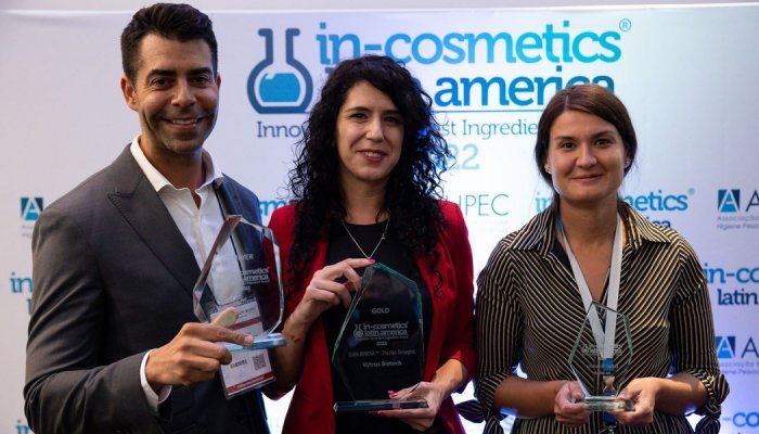 Na noite de ontem (21), os profissionais que atuam no setor de matérias-primas de cosméticos conheceram os três vencedores do Prêmio in-cosmetics Innovation Zone Best Ingredient 2022, anunciado durante a in-cosmetics Latin America, maior evento de ingredientes para formulação de produtos de higiene pessoal, perfumaria e cosméticos (HPPC) da América Latina.
