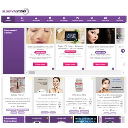 Como não poderia deixar de ser, a in-cosmetics Virtual ofereceu uma grade intensa de apresentações e palestras técnicas, com foco em novos ingredientes e seus benefícios para formulações, de tendências de mercado regionais e globais, abordando temas como: “Como a COVID-19 está mudando o cenário de varejo de produtos de beleza e cuidados pessoais”, apresentado pela Euromonitor, “Inovação e tendências de ingredientes – impacto da COVID", com a Factor-Kline, e “Beleza sustentável: construindo confiança depois da pandemia”, com a Mintel, e os painéis com a presença de indie brands brasileiras e inglesas.