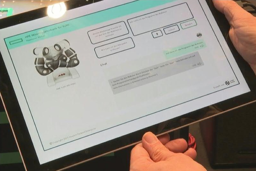 Durante o salão, a HPE, empresa americana fornecedora de serviços de tecnologia da informação, fez uma demonstração concreta do potencial da IA. Com um tablet nas mãos, um jovem funcionário da empresa dialogou com um assistente virtual com IA, instruindo-o a movimentar o braço de um robô. Se um equipamento não estiver funcionando corretamente, "os trabalhadores das fábricas não precisarão mais esperar a vinda de um técnico especializado, pois a inteligência artificial poderá" orientar as operações de reparação, declarou Thomas Meier, analista de dados da HPE que apresentou o protótipo.
