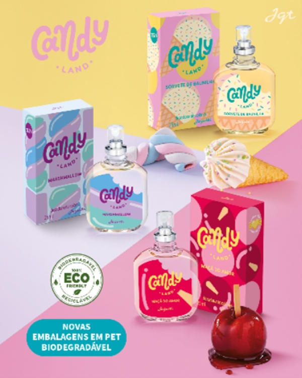 Para o relançamento de sua linha de perfumaria infantil (Carros, Hot Wheels Monster Truck, Minions, Turma da Mônica, Toy Story, Barbie, Candy Land, Romeu e Julieta, Os Aventureiros), a Jequiti escolheu embalagens PET 100% biodegradáveis e recicláveis.